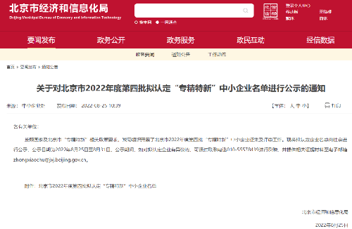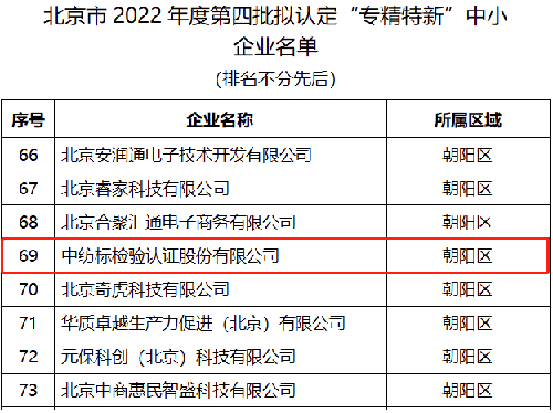 近日,北京市经济和信息化局公示了2022年度北京市“专精特新”中小企业名单,通用技术中纺院中纺标上榜北京市“专精特新”中小企业拟认定企业。