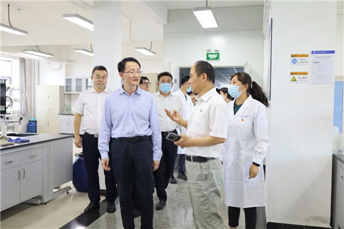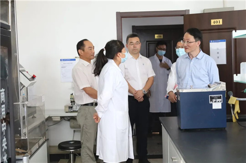 座谈会后,马可辉一行参观了中纺化工生产车间和实验室,他详细询问了相关技术问题以及员工生活工作情况。