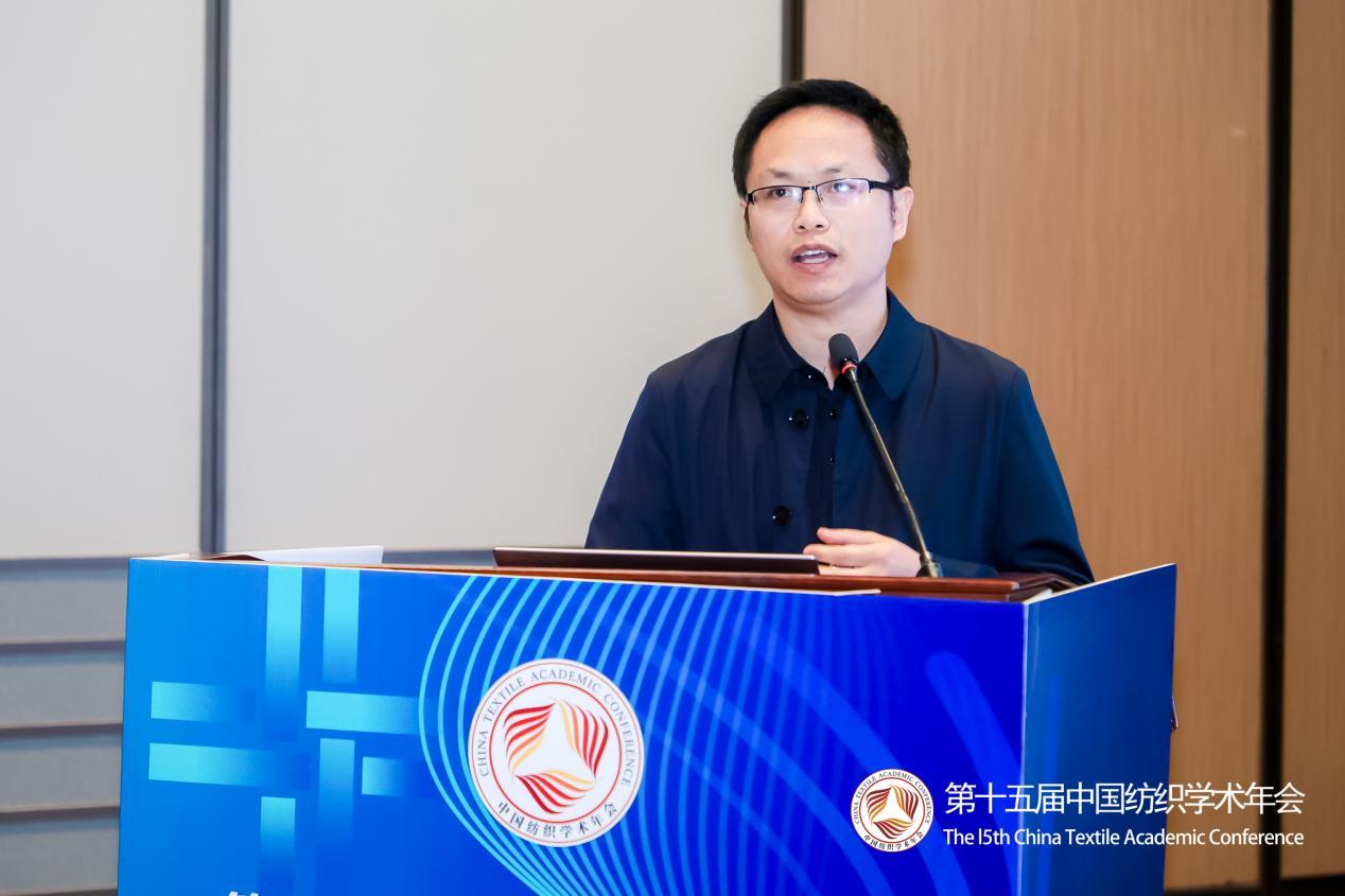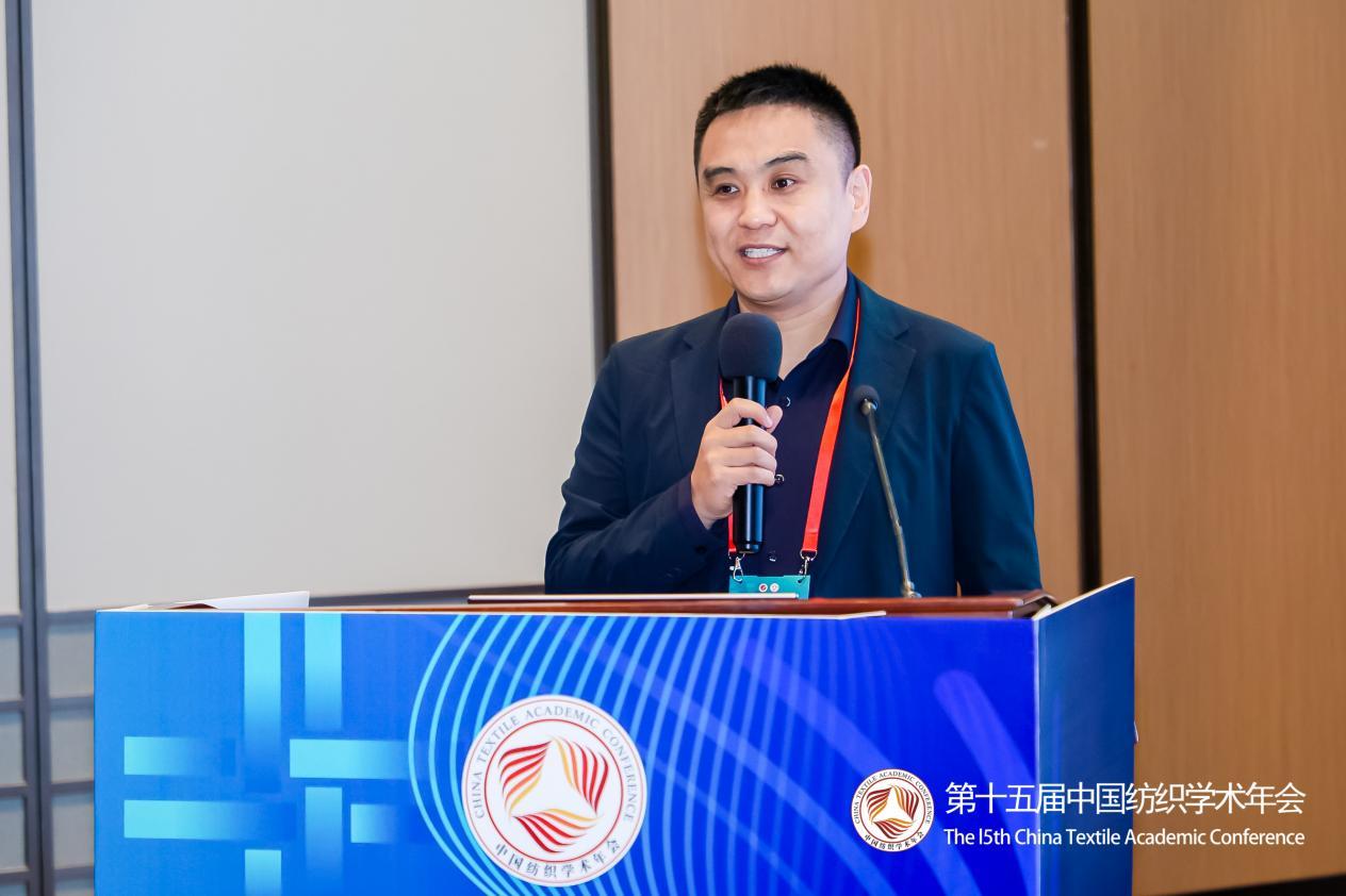 生物基纤维原料多样、设计灵活,兼备显著碳减排优势,能为生物医学、电子等新兴领域提供绿色低碳发展路径;作为合成纤维产业迈向碳中和的关键需求,优先发展生物基聚酯纤维对减碳效果尤为显著;在生物经济浪潮中,聚焦生物基单体与材料成为重要方向。中石化(大连)石油化工研究院第六研究室副主任、研究员周峰报告题目是《生物基合成纤维材料单体技术研发与应用进展》系统阐述了生物基合成纤维单体的技术研发路径与产业化应用进展,团队通过催化体系优化与工艺创新,实现了高效、低能耗的规模化生产,推动了生物基合成纤维材料在纺织领域的应用升级,助力行业绿色转型。